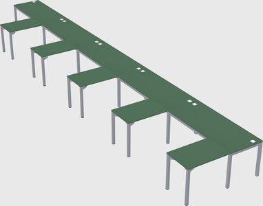 Green L-shaped Office Desk For 5 Persons