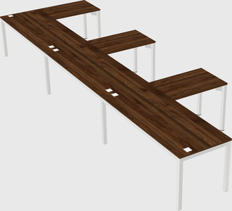 Columbia Walnut L-shaped Office Desk For 3 Persons