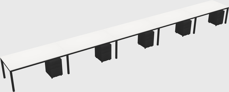 White Rectangular Office Desk With Metal Mobile Drawers For 5 Persons