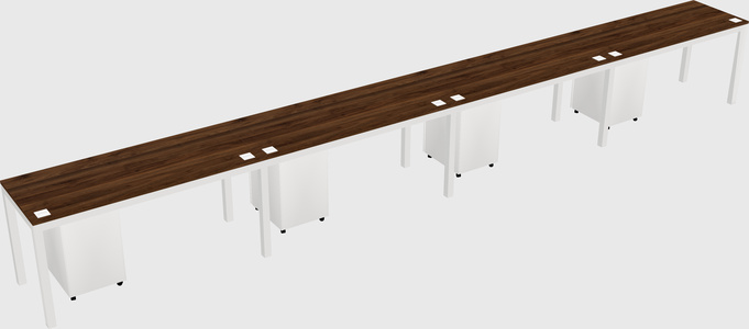 Columbia Walnut Rectangular Office Desk With Metal Mobile Drawers For 4 Persons