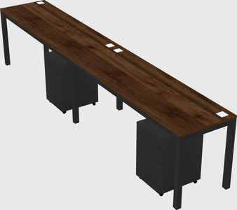 Columbia Walnut Rectangular Office Desk With Metal Mobile Drawers For 2 Persons