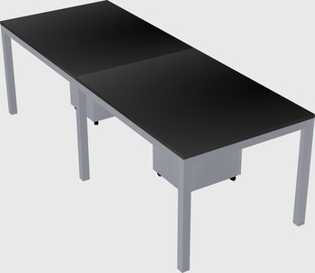 Black Rectangular Office Desk With Metal Mobile Drawers For 2 Persons