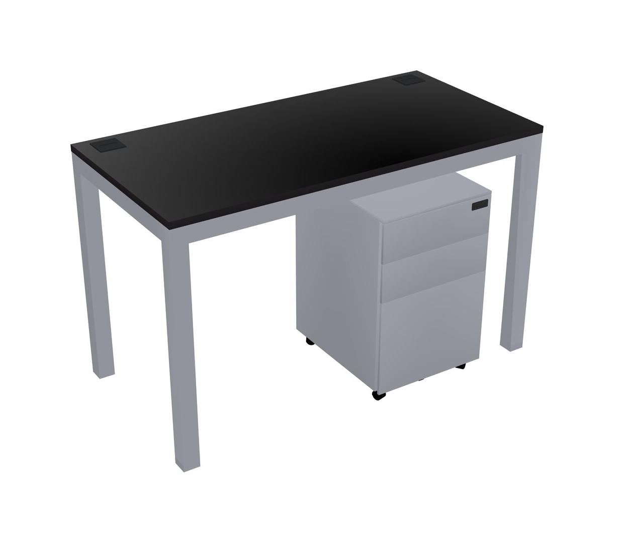 Black Rectangular Office Desk With Metal Mobile Drawers For 1 Persons