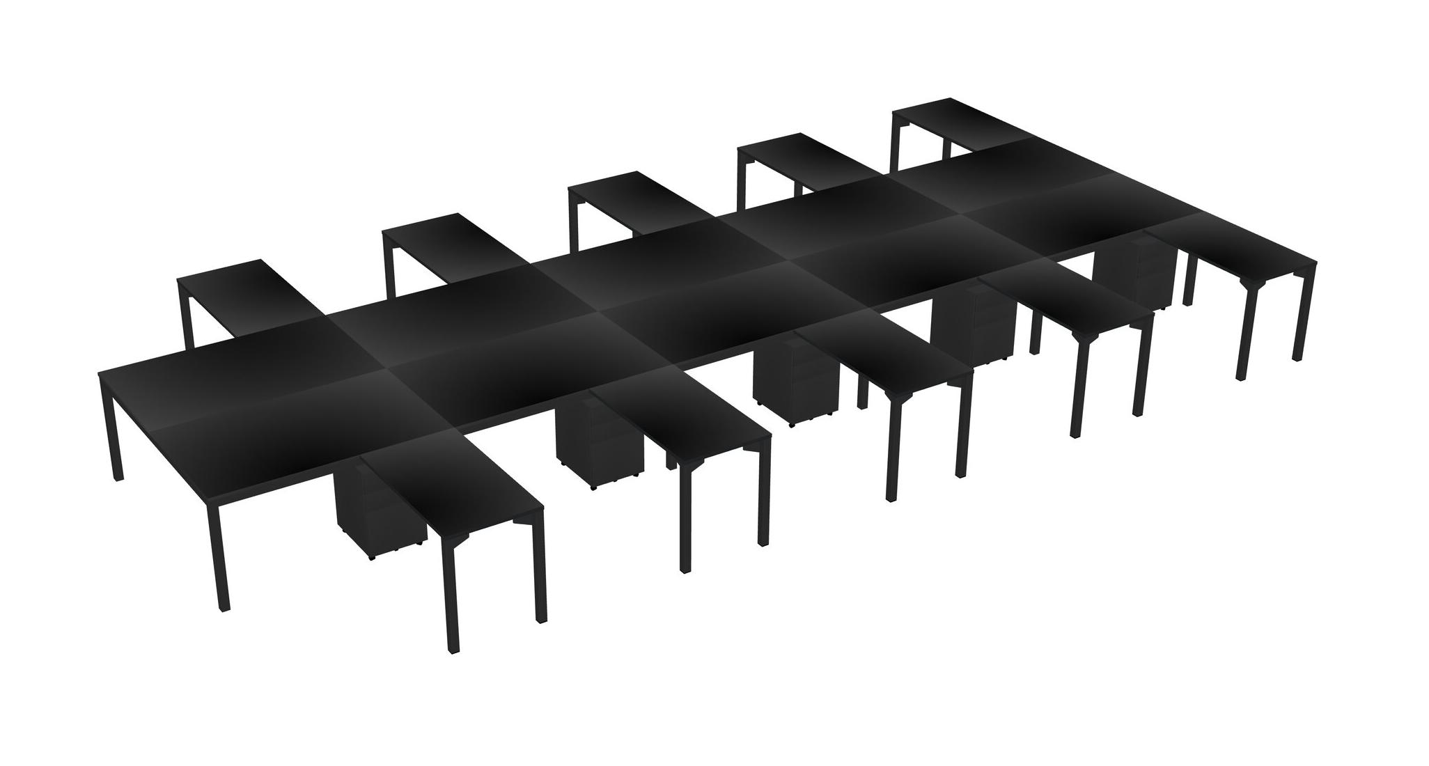 Black Shared L-shaped Office Desk With Metal Mobile Drawers For 10 Persons