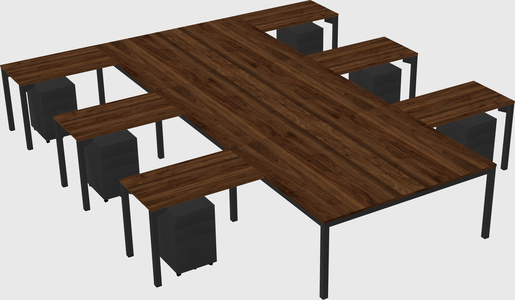 Columbia Walnut Shared L-shaped Office Desk With Metal Mobile Drawers For 6 Persons