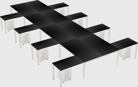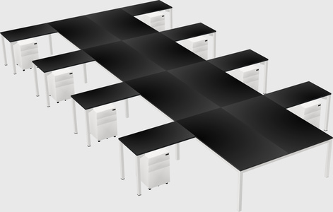 Black Shared L-shaped Office Desk With Metal Mobile Drawers For 8 Persons