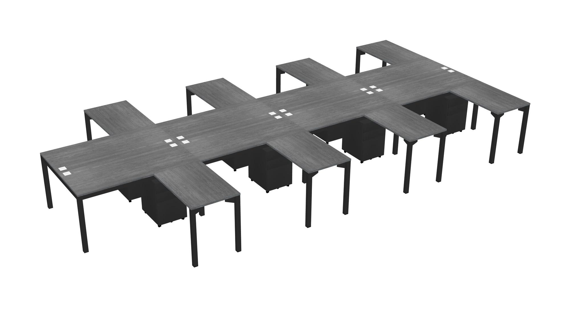 Grey Shared L-shaped Office Desk With Metal Mobile Drawers For 8 Persons