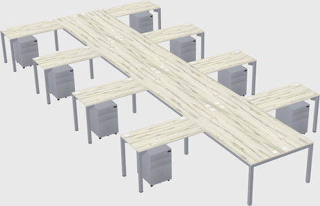 Heinne Holz Shared L-shaped Office Desk With Metal Mobile Drawers For 8 Persons