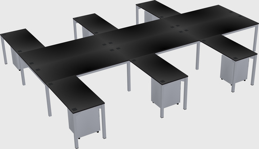 Black Shared L-shaped Office Desk With Metal Mobile Drawers For 6 Persons