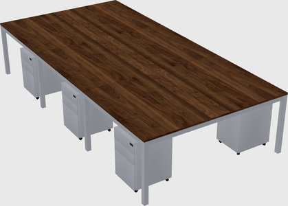 Columbia Walnut Shared Rectangular Office Desk With Metal Mobile Drawers For 6 Persons