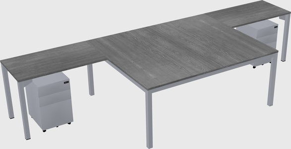Grey Shared L-shaped Office Desk With Metal Mobile Drawers For 2 Persons