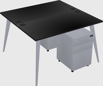 Black Shared L-shaped Office Desk With Metal Mobile Drawers For 2 Persons