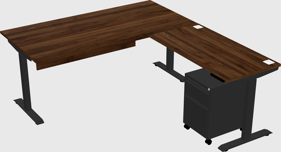 Columbia Walnut Shared L-shaped Office Desk With Metal Mobile Drawers For 2 Persons