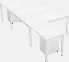 White Shared L-shaped Office Desk With Metal Mobile Drawers For 2 Persons