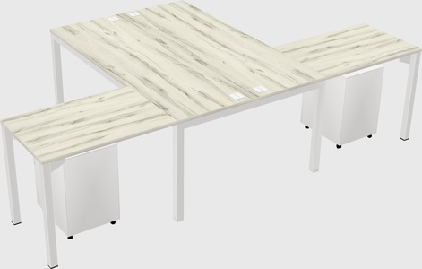 Heinne Holz Shared L-shaped Office Desk With Metal Mobile Drawers For 2 Persons