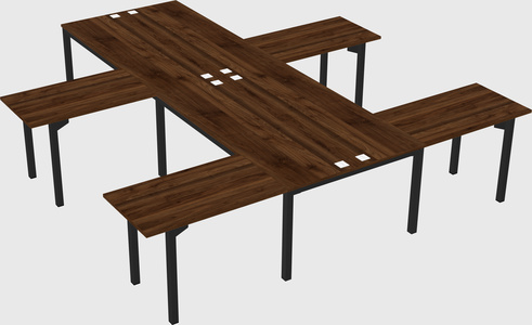 Columbia Walnut Shared L-shaped Office Desk For 4 Persons