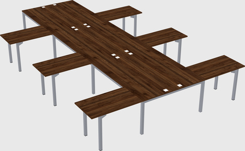 Columbia Walnut Shared L-shaped Office Desk For 6 Persons