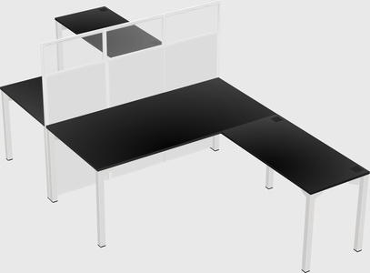 Black Shared L-shape Office Cubicle Panel System For 2 Persons