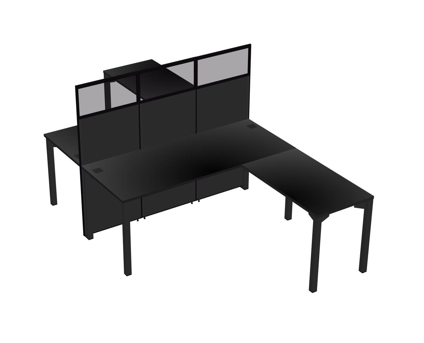Black Shared L-shape Office Cubicle Panel System For 2 Persons
