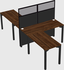 Columbia Walnut Shared L-shape Office Cubicle Panel System For 2 Persons