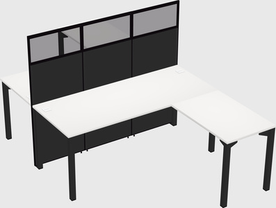 White Shared L-shape Office Cubicle Panel System For 2 Persons