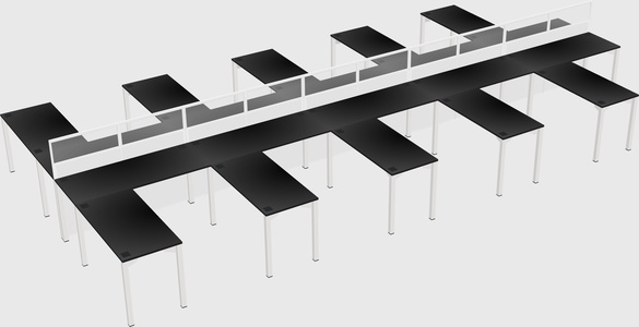 Black Shared L-shape Office Cubicle Panel System For 10 Persons