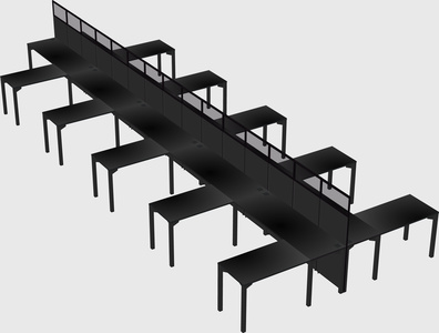 Black Shared L-shape Office Cubicle Panel System For 10 Persons