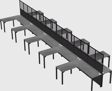 Grey Shared L-shape Office Cubicle Panel System For 10 Persons