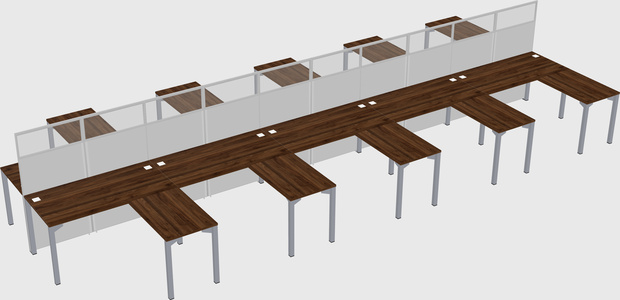 Columbia Walnut Shared L-shape Office Cubicle Panel System For 10 Persons