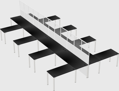 Black Shared L-shape Office Cubicle Panel System For 8 Persons