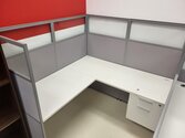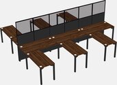 Columbia Walnut Shared L-shape Office Cubicle Panel System For 6 Persons