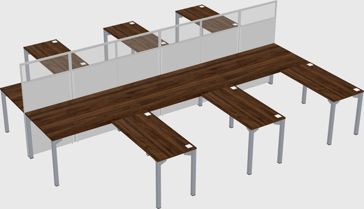 Columbia Walnut Shared L-shape Office Cubicle Panel System For 6 Persons