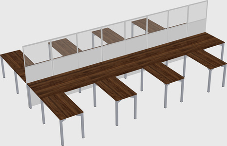 Columbia Walnut Shared L-shape Office Cubicle Panel System For 8 Persons