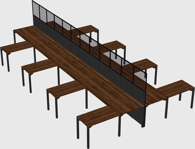 Columbia Walnut Shared L-shape Office Cubicle Panel System For 8 Persons