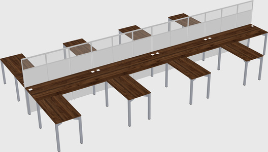 Columbia Walnut Shared L-shape Office Cubicle Panel System For 8 Persons