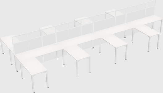White Shared L-shape Office Cubicle Panel System For 8 Persons
