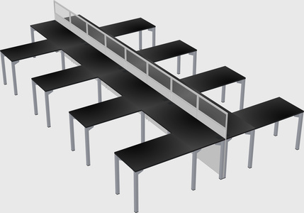 Black Shared L-shape Office Cubicle Panel System For 8 Persons