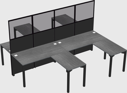 Grey Shared L-shape Office Cubicle Panel System For 4 Persons
