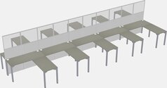 Grey Shared L-shape Office Cubicle Panel System For 10 Persons