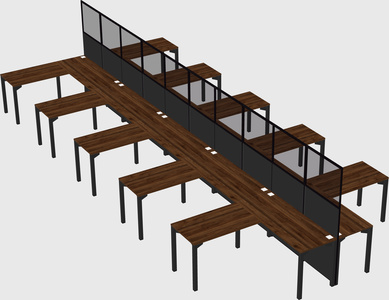 Columbia Walnut Shared L-shape Office Cubicle Panel System For 10 Persons