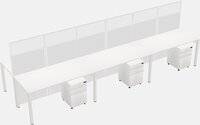 White Shared Rectangular Office Cubicle Panel System With Mobile Drawers For 6 Persons