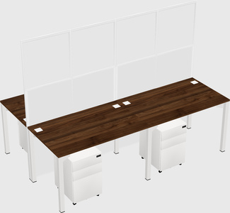 Columbia Walnut Shared Rectangular Office Cubicle Panel System With Mobile Drawers For 4 Persons