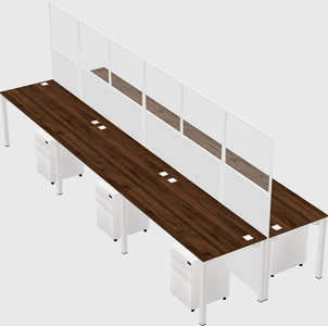 Columbia Walnut Shared Rectangular Office Cubicle Panel System With Mobile Drawers For 6 Persons