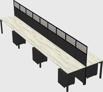 Heinne Holz Shared Rectangular Office Cubicle Panel System With Mobile Drawers For 6 Persons