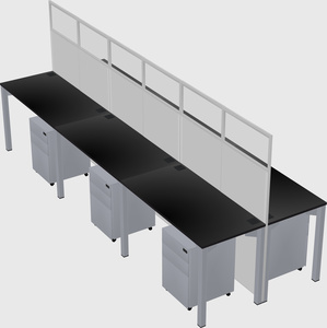 Black Shared Rectangular Office Cubicle Panel System With Mobile Drawers For 6 Persons