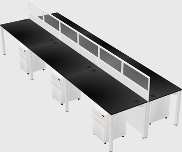 Black Shared Rectangular Office Cubicle Panel System With Mobile Drawers For 6 Persons
