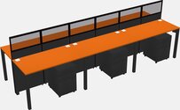 Black Shared Rectangular Office Cubicle Panel System With Mobile Drawers For 6 Persons