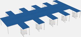 Prism Blue Shared L-shaped Office Desk With Metal Mobile Drawers For 10 Persons