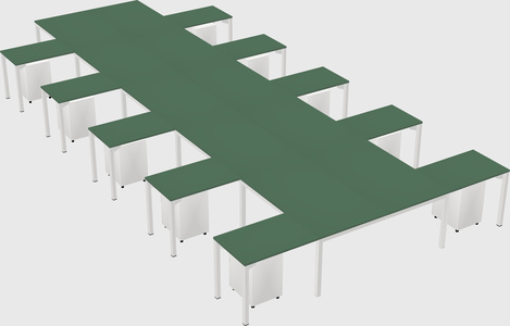 Green Shared L-shaped Office Desk With Metal Mobile Drawers For 10 Persons