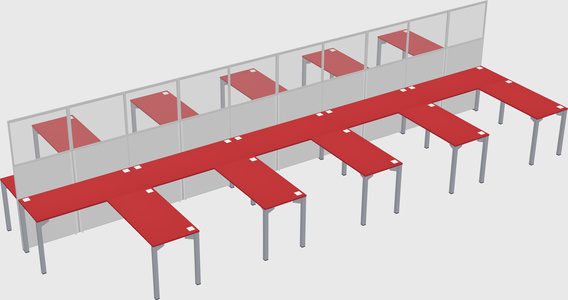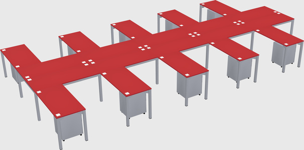 Prism Red Shared L-shaped Office Desk With Metal Mobile Drawers For 10 Persons